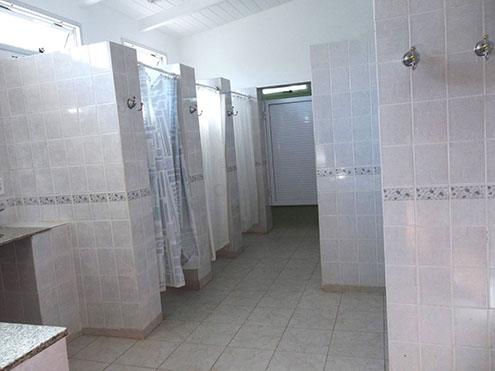 Amplio predio forestado y parquizado. Área de baños exclusivos con agua caliente permanente.